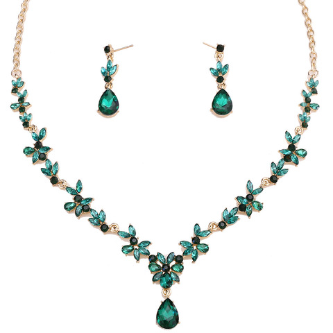 Vente en gros de haute qualité goutte d'eau forme Zircon collier carré fleur boucles d'oreilles anniversaire fiançailles fête mariage ensemble de bijoux