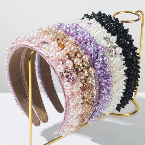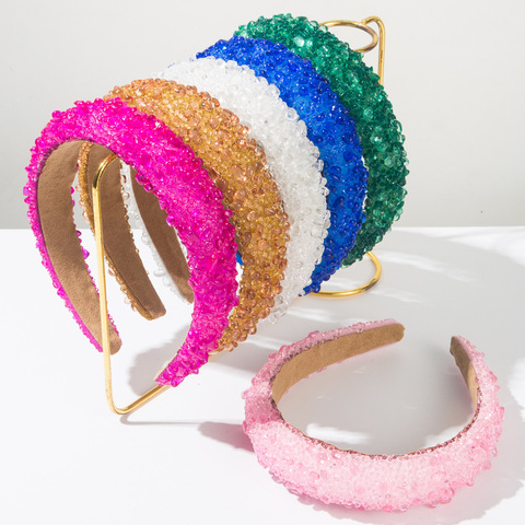 Bandeau en éponge à larges bords baroque de style européen américain nouveau bandeau simple à la mode en pierre de cristal