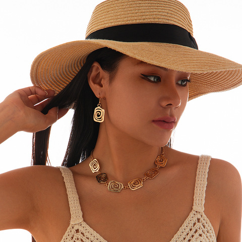 ロマンチックな幾何学的な波糸女性の不規則な合金ネックレスとイヤリングセット結婚パーティー婚約記念日