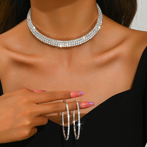 ヨーロッパ系アメリカ人高級クリスタルジュエリーセット新しいチェーンネックレスイヤリングブレスレット日本人韓国ファッション花嫁アクセサリー