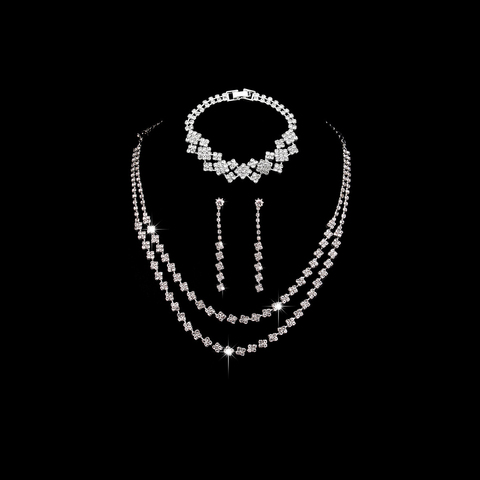 ファッションダブルネックレスクリスタルダイヤモンド结婚式ブライダルネックレスとイヤリング女性のためのジュエリーセット